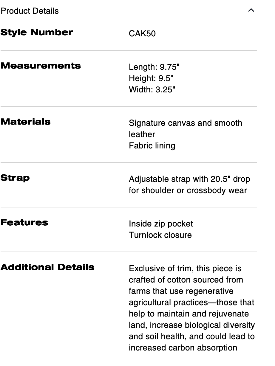باستثناء القطع، هذه القطعة مصنوعة من القطن مصدرها المزارع التي تستخدم الممارسات الزراعية المتجددة - تلك التي تساعد على الحفاظ على الأراضي وتجديد شبابها، وزيادة التنوع البيولوجي وصحة التربة، ويمكن أن تؤدي إلى زيادة امتصاص الكربون